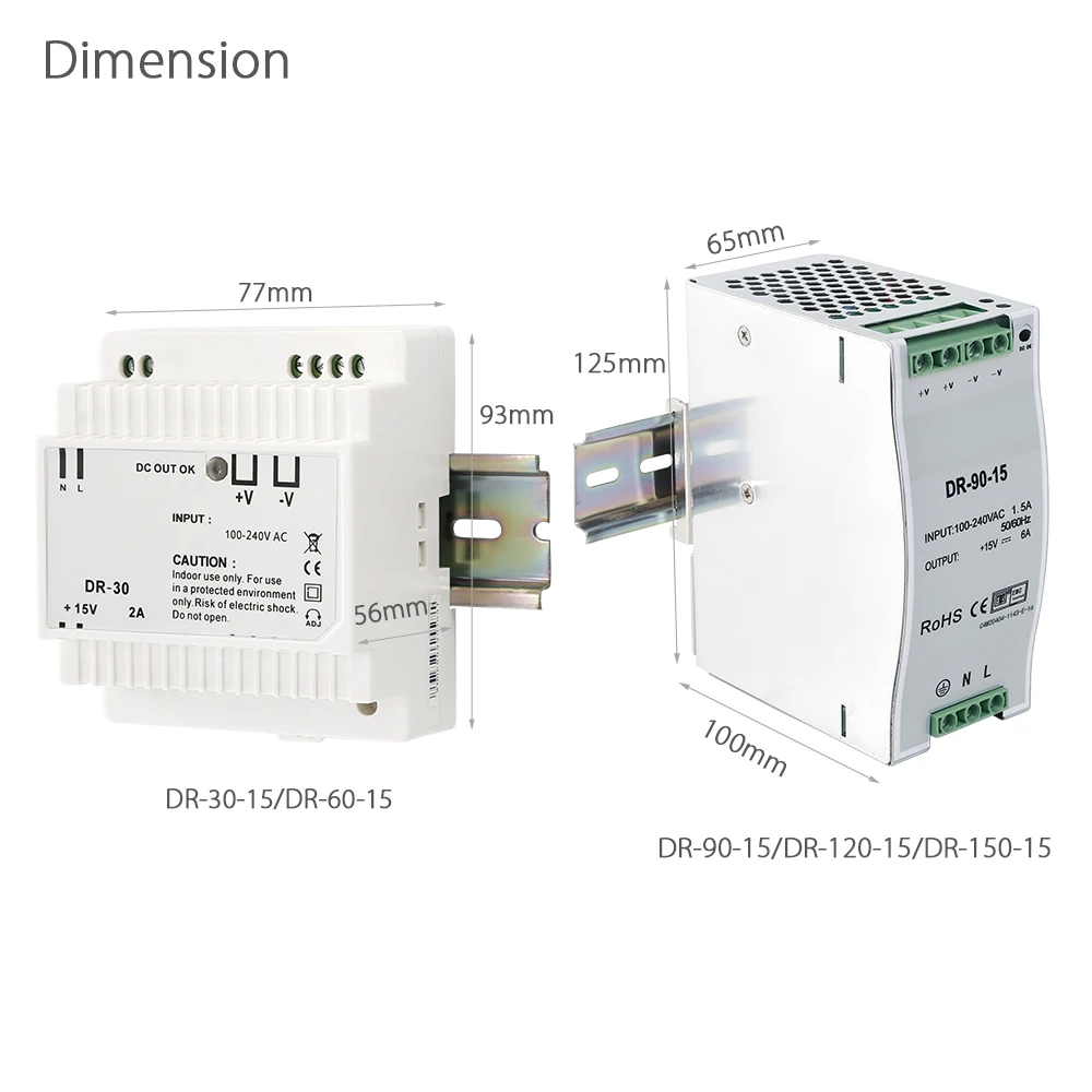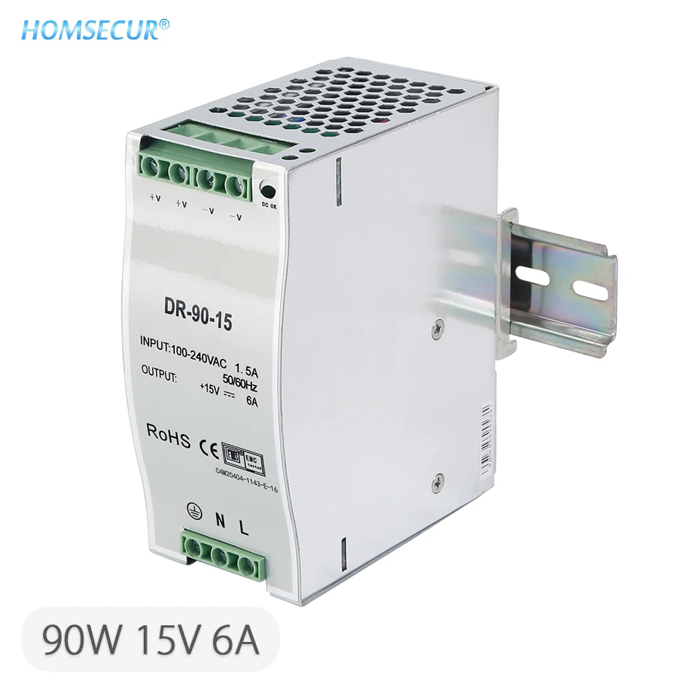 Review HOMSECUR 15V 30W/60W/90W/120W/150W Din Rail Single Output Switching Power Supply For Video Door Int